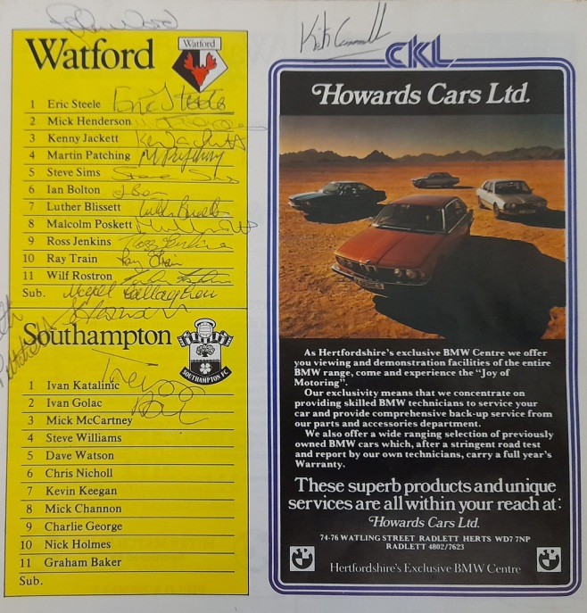 WATFORD v. SOUTHAMPTON, League Cup 2nd Round, 1980.
